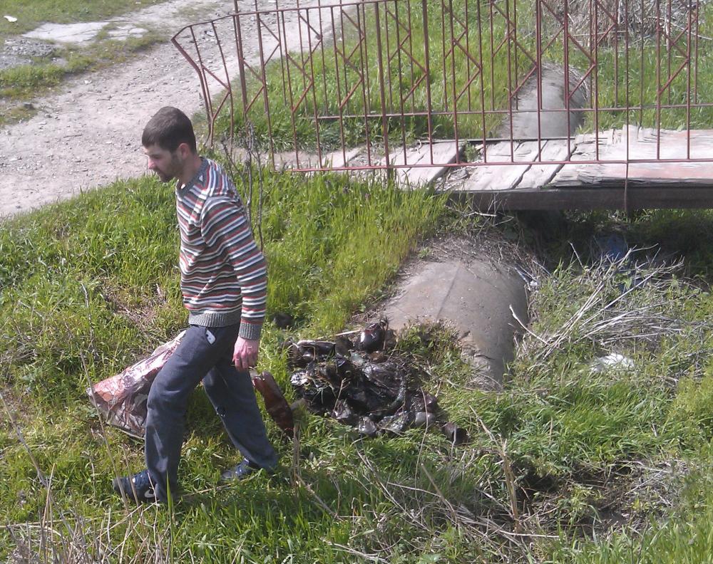 Сегодня на работе был субботник. Я решил сначала не заниматься со всеми обчной уборкой территории, а зашел на соседний заброшенный завод им. Ткаченко и пособирал там вдоль забора бутылки.
