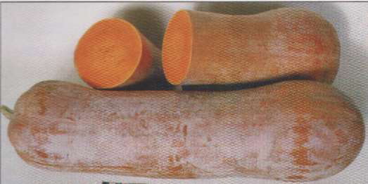 ТЫКВА Юбилейная 70 Сорт мускатный, среднеспелый, от всходов до созревания плодов 120-125 дней. Растение длинноплетистое. Плод - прямая или слабоизогнутая перехватка, с утолщением в виде семенной камеры у цветочного конца, буро-оранжевой окраски. Мякоть оранжевая, средней плотности, сладкая с приятным мускатным ароматом. Урожайность 35-48 т/га. |
