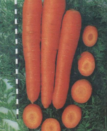 Стелла Сорт ранний, с дружным формированием урожая и высокой товарностью. Корнеплоды крупные, утолщенно-конические, длиной 16-17 см, отличного вкуса, имеют ярко-оранжевую внутреннюю и внешнюю окраску. Мякоть плотная, сочная, с высоким содержанием Сахаров и каротина. Относительно устойчив к болезням, хорошо хранится до весны. | Используется при изготовлении продуктов для детского и диетического питания, так как содержит | очень мало нитратов (20-45 мг/ кг). |
