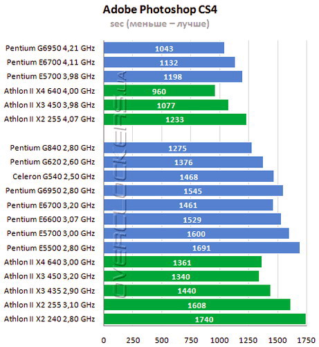 так что проц должен дать как минимум +50% в фотошопе, так как и частоты, и кэш больше. Да и ещё процентов 50 за счёт видеокарты, но нужно CS5 ставить или выше, который поддерживает обработку с помощью видеокарты.