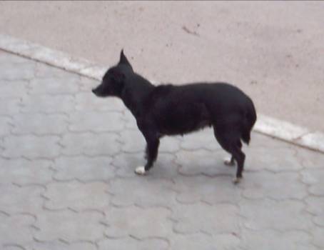 Этой зимой одна бродячая собачка увязалась за нами. Я не хотел ее брать домой, т.к., во-первых, сука, во-вторых, вредная и злобная, в-третьих, мне вообще собака не нужна. Вот это существо - на первой фотографии.