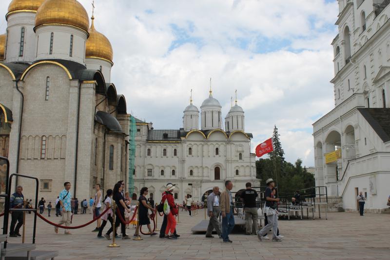 Московский Кремль, как всегда, гостей больше чем местных туристов. Царь-колокол Царь пушка Архангельский собор Архангельский собор - фреска у входа |