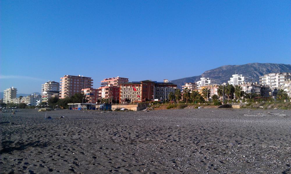 В почти трехчасовой дороге к Алании (мы были в в её пригороде) в основном видны такие типичные турецкие дома (почти на всех 3-5 этажных домах есть металлическая бочка для согрева воды солнцем) и довольно часто встречаются теплицы: Вот еще несколько фото типичных домов (часто есть бассейн во дворе) у берега моря, и вид на Махмутлар (Алания) с начала горы. Как видно - отели рядом с банановой рощей. |