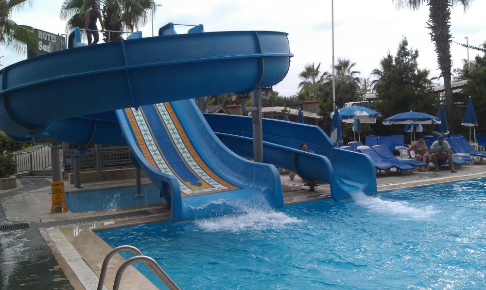 Sun Fire Beach изнутри: Номер убирали ежедневно, горки включали 3 раза в день по пол часа. Беговые дорожки не работали. Анимация (почему-то я думал, это мультипликатор, а не клоун) - сказали, что сезон с 1 октября закрыт, по этому её просто не было... Музыка была не громкая, типа штрафуют. Вид на море конечно красивый. |