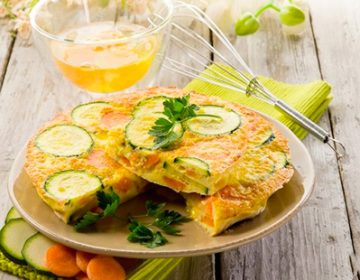 Приготовления: 1. Кабачок натереть соломкой. 2. Обжарить кабачок до мягкости. Яйца взболтать с солью и зеленью и залить смесью кабачки. 3. Накрыть крышкой , чтоб яйца быстрее схватились. 4. Нарезать на порции и подать горячим. |