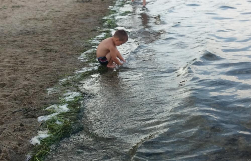 Мальчик у воды на Днестровском лимане, много водорослей, их реально как то убирать и использовать как удобрения на полях? |