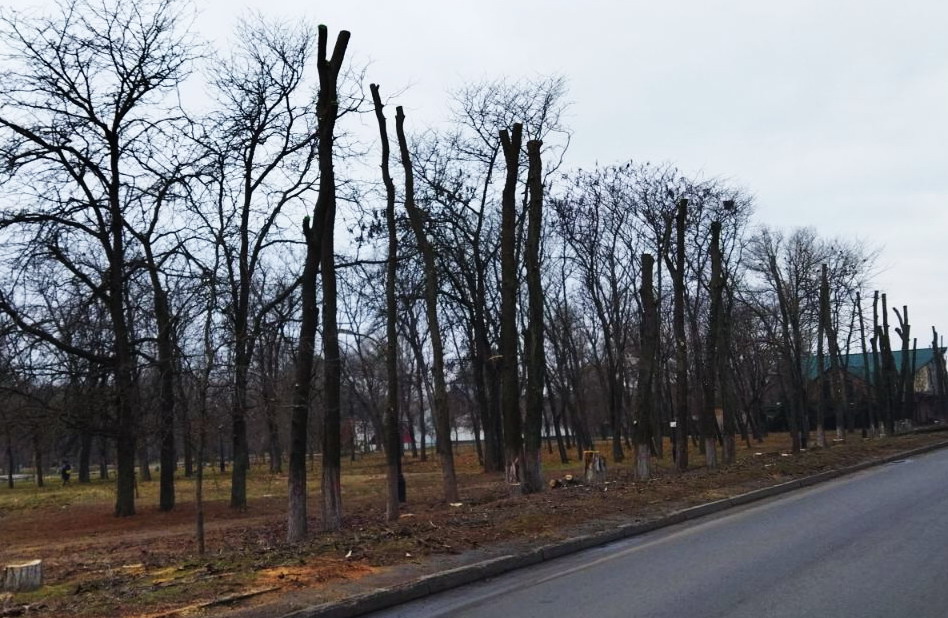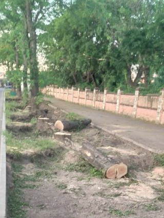 В паре Победы обрезка деревьев превращается в вырубку деревьев по улице Царева ((