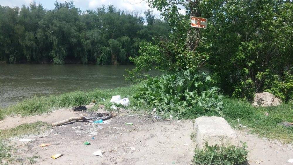 Состояние берега за паромом со стороны Тирасполя - влево, чуть дальше, где убирали учащиеся городского ученического совета из штаба «Лидер»: