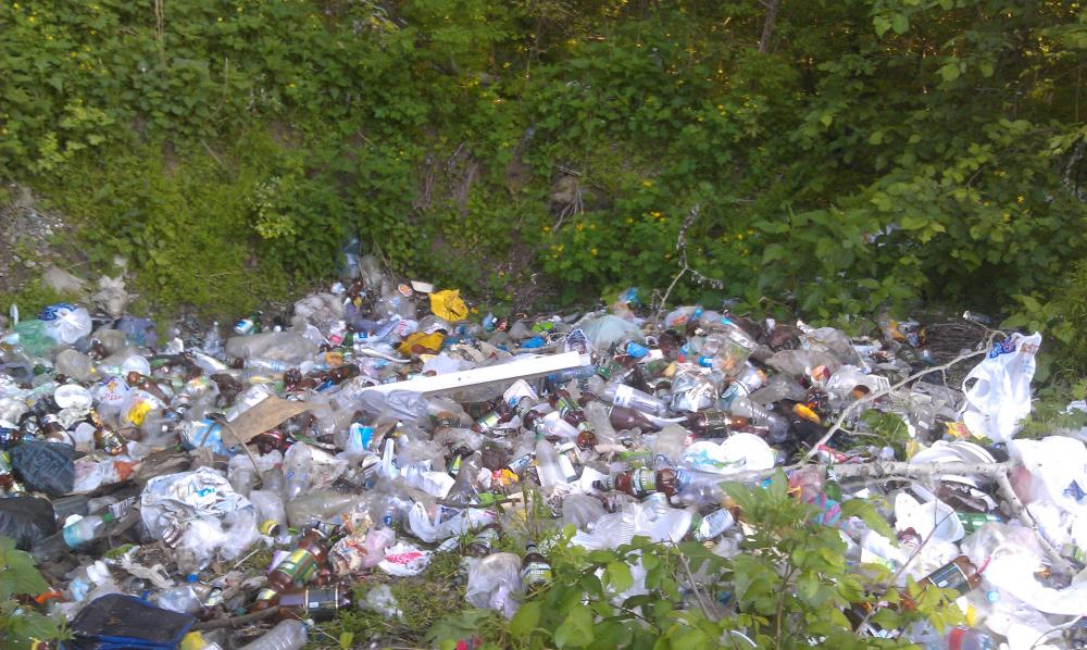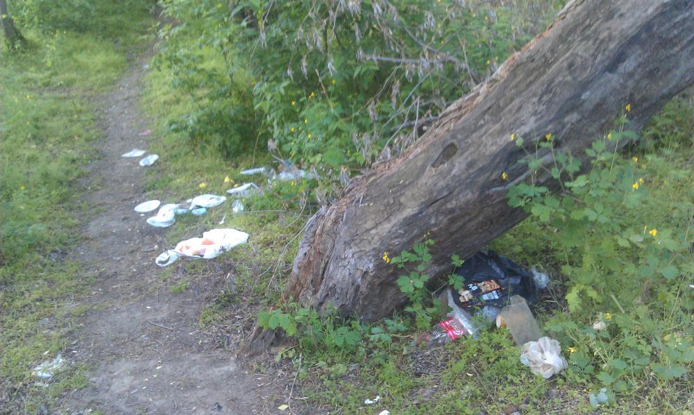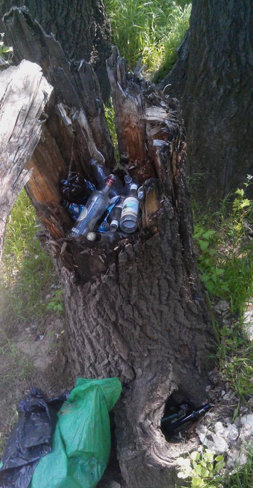 Были на маевке, в кустах где мы сидели, было несколько бутылок от водки, отнесли в мусорку к мосту.