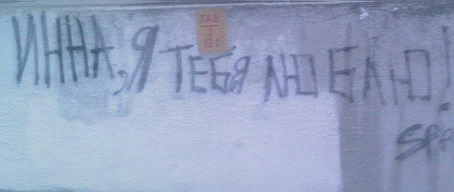 На днях у соседнего подъезда девушке парень такое красивое признание нарисовал.. помня о теме, думала вернусь и сфоткаю... а вечером увидела только мокрое пятно на асфальте и бабульку-активистку с ведром, веником .. и довольную донельзя... Мешала ей надпись сильно... И не краской даже, мелом парень рисовал... Напрягает чужая нетерпимость чьей-то радости...
