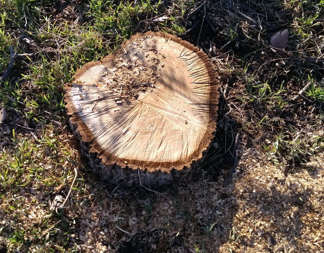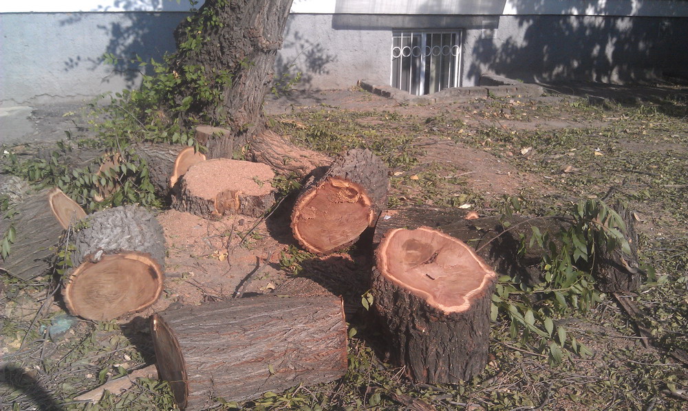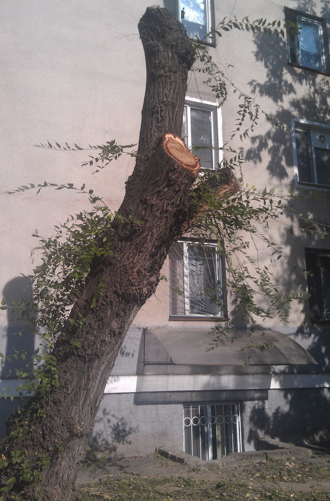 Было огромное дерево у входа в ТМК, теперь там огромный пенек и куча древесного материала на продажу.
