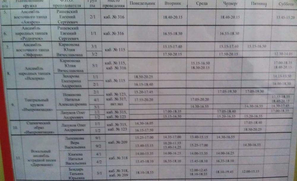 Ансамбль спортивного бального танца "Реверанс", Кружок спортивных и современных танцев "Дэнс-Арт", Шоу балет "Фристайл", Ансамбль индийского танца "Ситира". Вложение 20513 Ансамбль восточного танца "Амарен", Ансамбль народных танцев «Родничок», Ансамбль восточного танца "Эйфория", Ансамбль народных танцев "Искорка", Вокальный ансамбль эстрадной песни "Дарование". Вложение 20514 Вокальный коллектив «Лира», Сценический образ «Лира», Вокально-хоровой ансамбль "Карусель", Вокально-инструментальный ансамбль «Рок-портал», Ансамбль эстрадной песни «Друзья», Современный спортивный танец "Брейк-данс". Вложение 20515 |