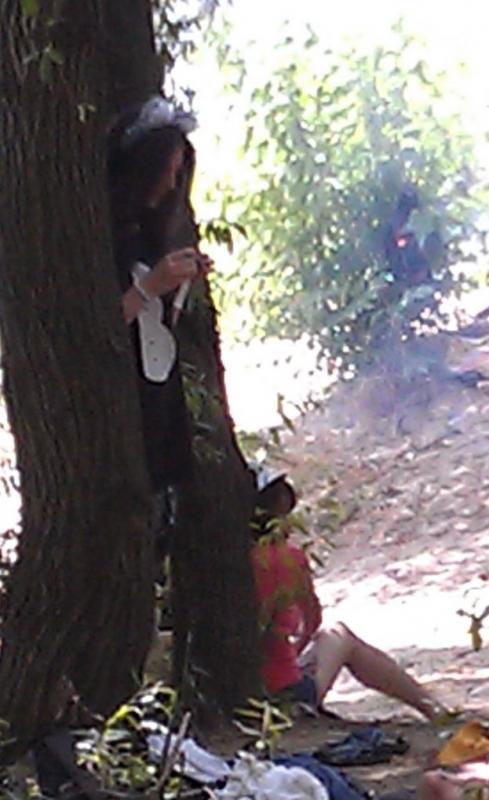 Вчера на пляже увидел человечка между деревьев с телефоном и чем-то белым типа заячьих ушек или фаты, это парень или девушка?