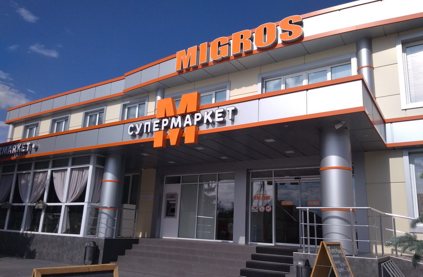 Парканы, супермаркет Migros. Поставили коробку местных интернатовских деток.
