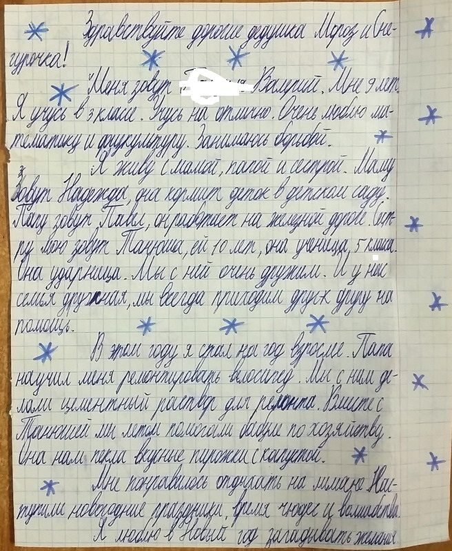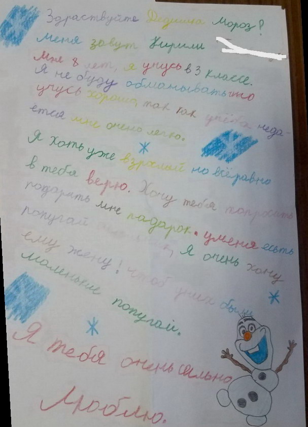 Виолета 8 лет, Учиться хорошо на 4-5. Инвалид детства. Просит набор раскрасок у Дедушки мороза. Там сожитель пьет (( Вложение 26043