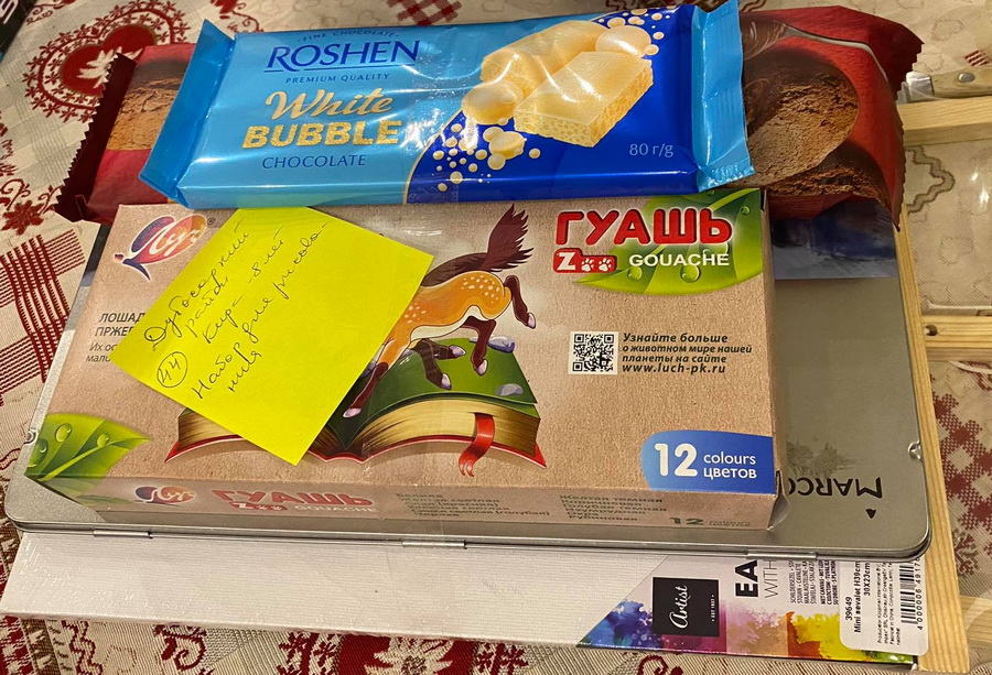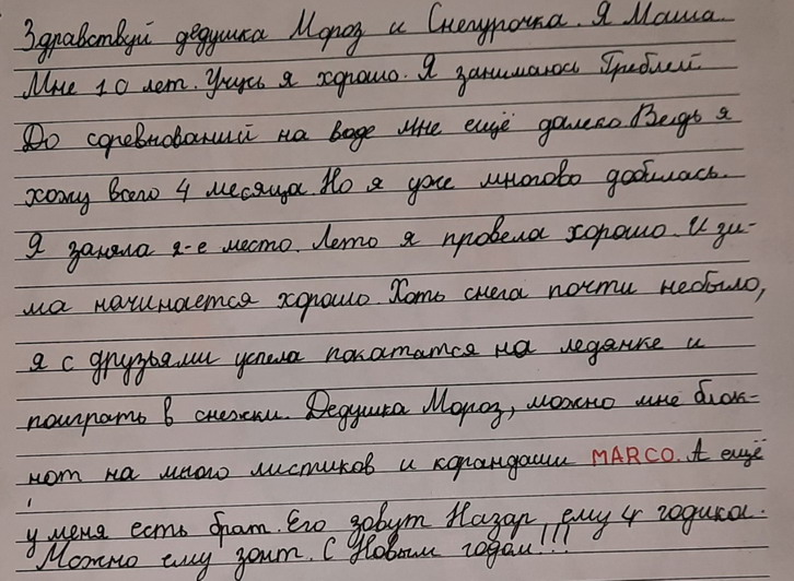 Маше 10 лет, просит блокнот и карандаши Марко. Брату Назару 4 годика - просит зонтик. Вложение 27942 Они получили блокнот и зонтик от Почты. |