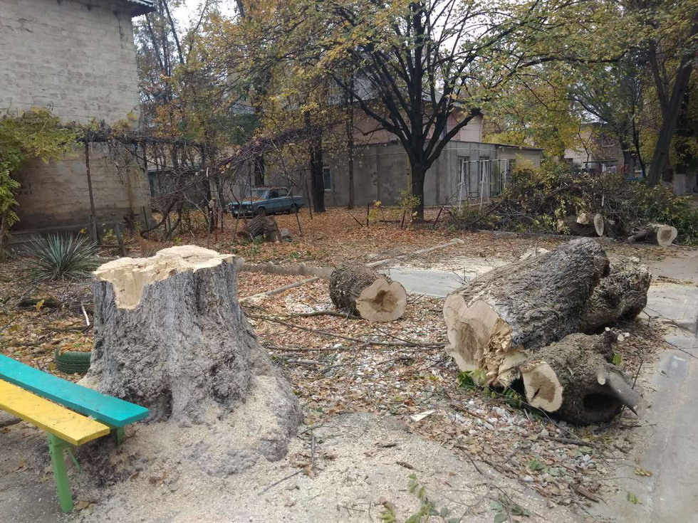 Тирасполь, пер. Чкалова 54, спилили здоровые тополя. Жильцы дома были в шоке, но что сделать то?