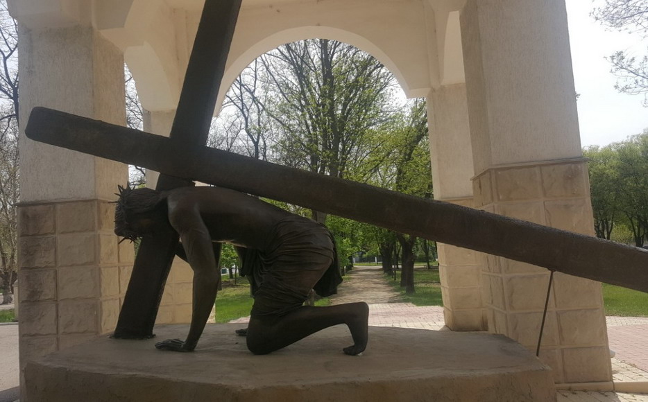 В парке Кирова появился памятник Иисусу под колокольней на входе. Наверно перед Пасхой. Кстати, он с пенопласта, или чего-то такого.