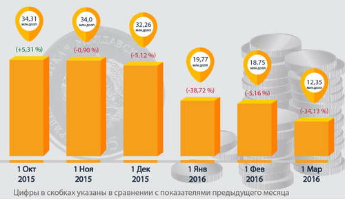Состояние валютных резервов ПМР с 1.10.2015 - по 1.03.2016