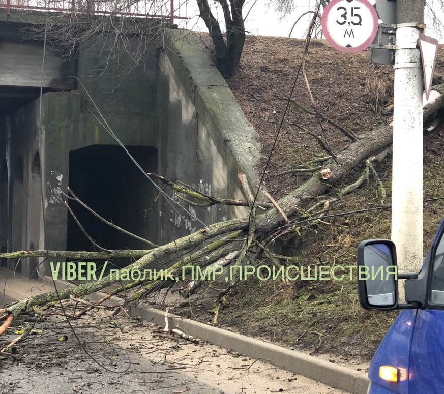 Тирасполь, по Чапаева упало гнилое дерево на дорогу. Почему-то такое дерево не спилено?