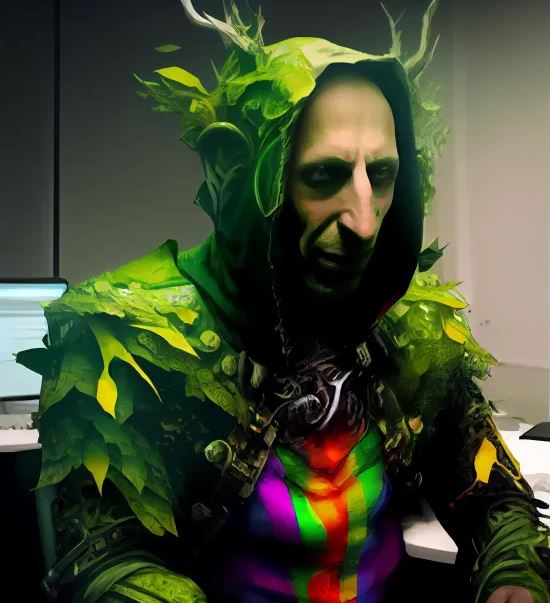 Картинку сделали в Midjourney, это нейросеть - генерирует картинки по тексту - как я понял, а может и на основании каринки и текста. А еще умеет смешивать картинки.