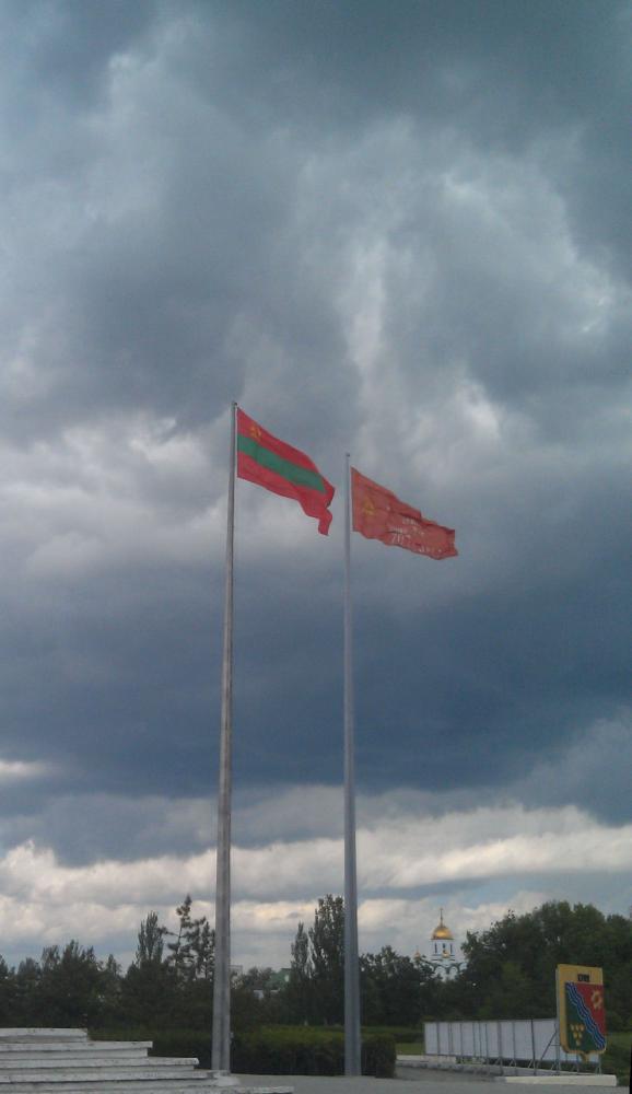 Два флага, один ПМР - второй какой-то военный. Добавил фото через 2 дня.