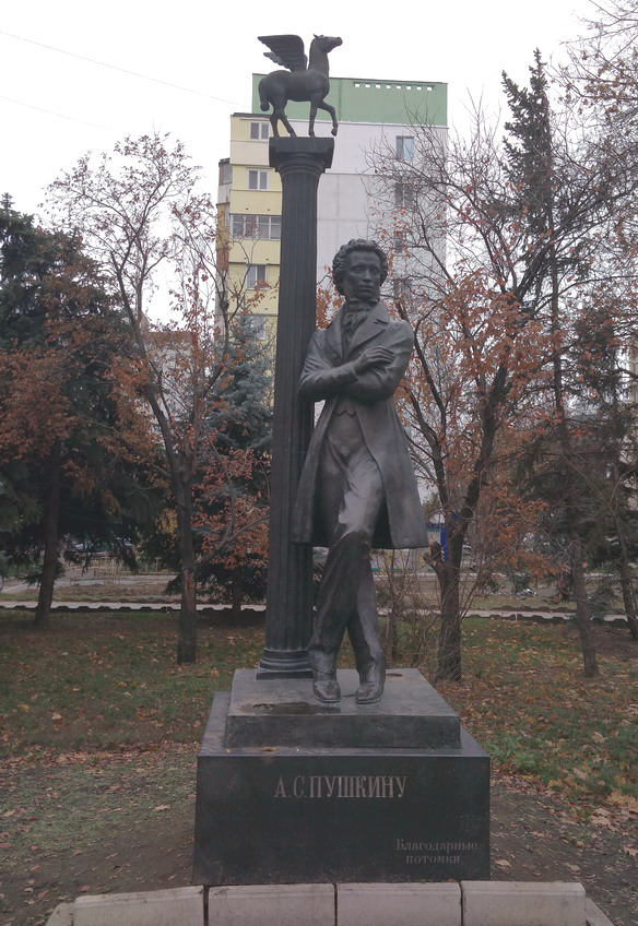Памятник А.С. Пушкину у городской библиотеки Тирасполя.