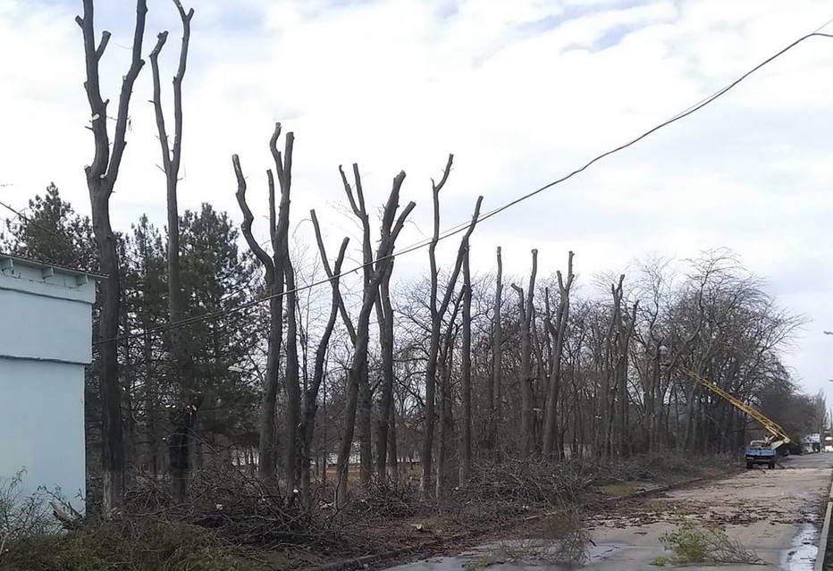 В Тирасполе на балке, по улице Комсомольской напротив домов номер 7, 9, 11 спилено порядка 30 деревьев.
