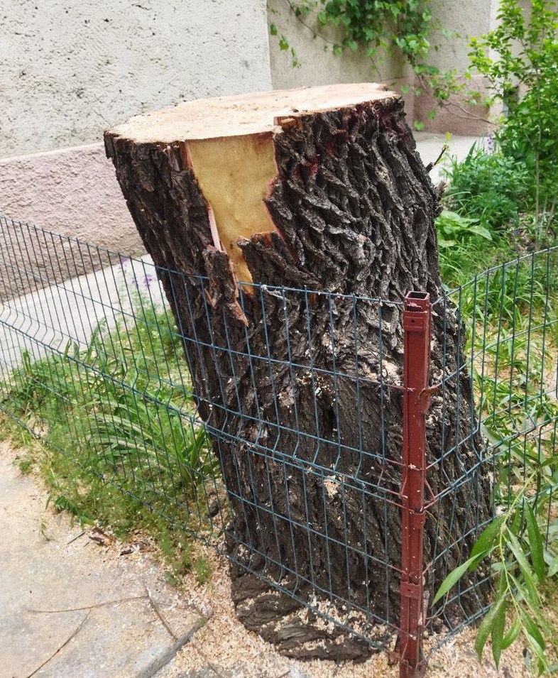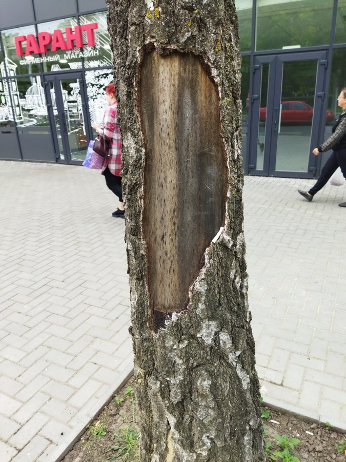 Во внутреннем дворе 9 школы, сделали топпинг дерева - оставили столб, так еще зачем-то начали украшать его - сняли кору. Это админ статья и смерть дереву.