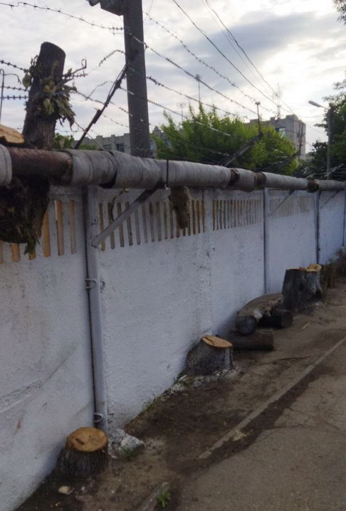 Тирасполь, на красных казармах недавно спили несколько деревьев у миротворцев. Чем мешали - неясно. Видимо у ограды росли.