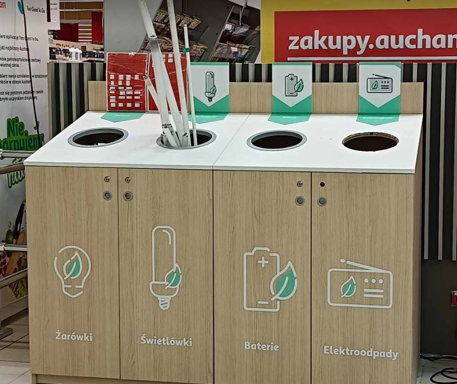 Прислали мне фотку с Польши с какого-то супермаркета, как там собирают батарейки, ртутные лампы и электронные отходы.