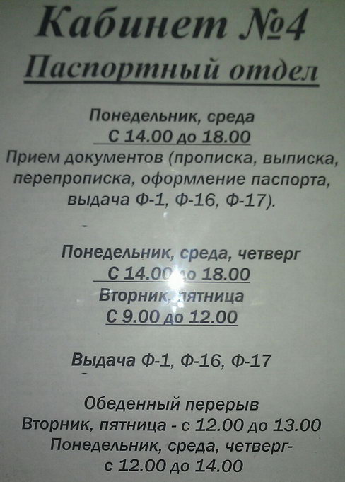 Расписание паспортного стола в Тирасполе у Шерифа на Мечникова.