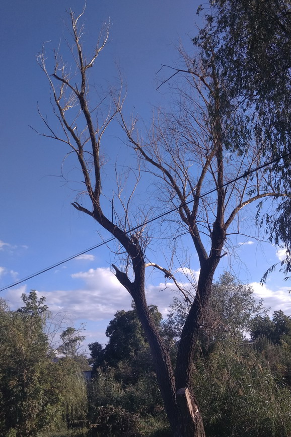 Кстати, судя по фото (мне его прислали), у дерева уже много сухих веток, а есть какое-то правило, если процент сухих веток больше например 50%, то дерево надо спилить.