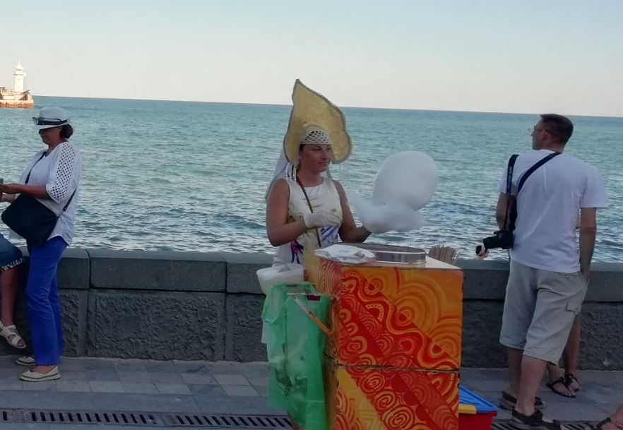 На набережной оккупированной Ялты вата в кокошнике продает вату