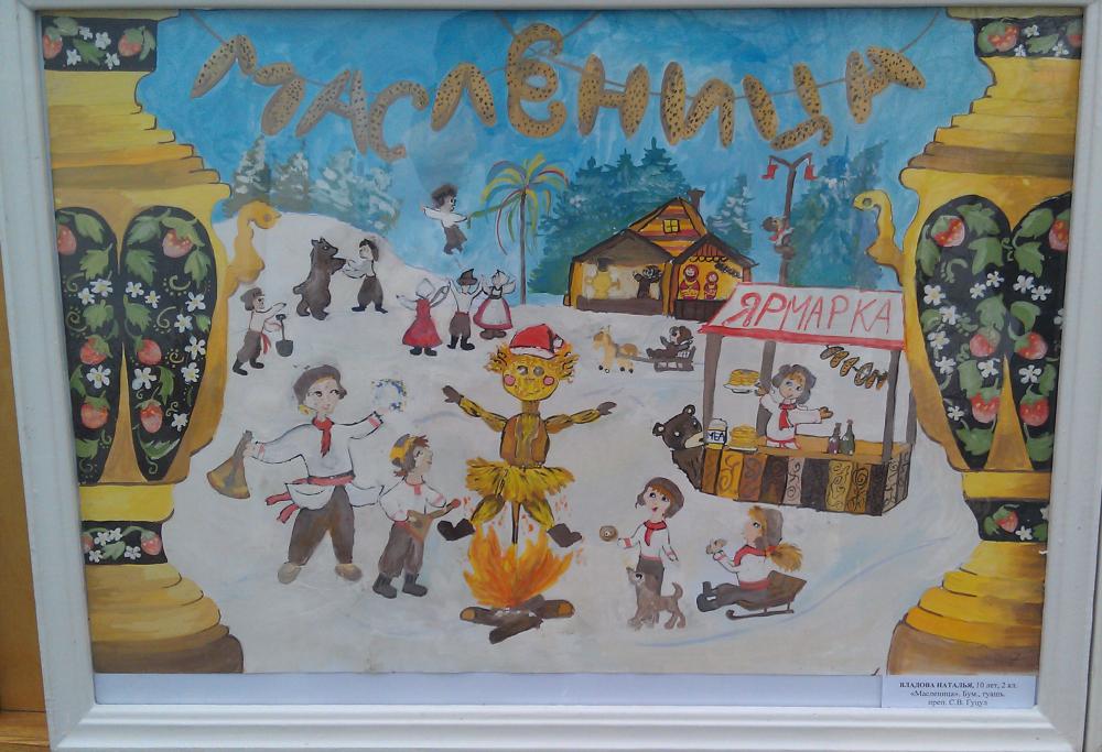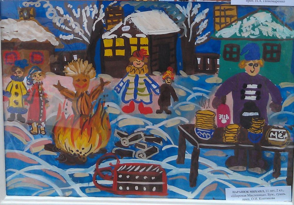 Картины детей из художественной школы имени А.Ф. Фойницкого на тему "Широкая масленица".