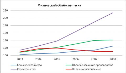 подробнее о доли углеводородов в экспорте товаров и структуре ВВП вы можете узнать тут http://www.warandpeace.ru/ru/exclusive/view/64362/ - слишком много графиков, а делать перепост лень), но самый показательный график по физическому производству (не привязанному к колебанию цен) Вложение 7988 Цитата: