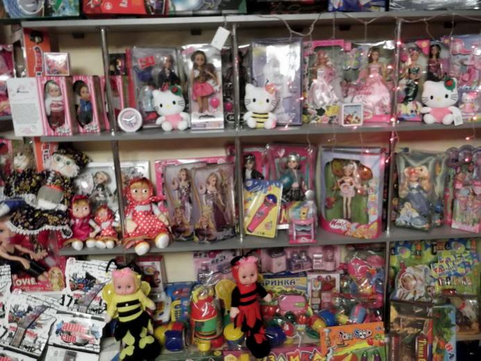 Несколько фото ассортимента товара в магазине игрушек: