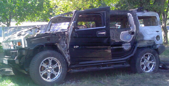 По слухам хамммер сгорел во время грозы....Бог шельму метит?........