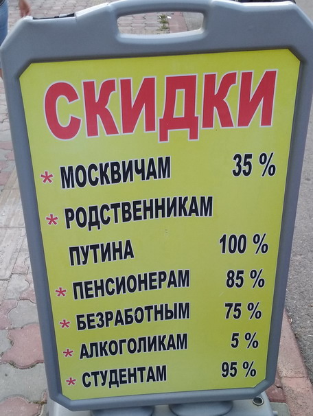 Пс: ребят, ну а что вы хотите? По-моему очень даже неплохо. Питания явно было такого плана: - 2-3 вида мяса +рыба -гарниры -салаты -супы -фрукты -сладкое Мы дома у себя и 1/5 не наготавливаем. 660 евро путёвка и за 2+1. Бориному ребёнку вроде 11 лет, так что считайте что путёвка вышла по 220 евро за человека. В эти деньги входит : - перелёт на самолёте туда-обратно - трансфер в/из аэропорта - анимация ( пусть и захудалая) - проживание 7 ночей - питание по системе все включено - бассейны с горками - купание в нормальном море и красивом регионе А теперь переведём это все в гривны и подучим 6600 гривен с человека. Скажите, вы мне под Одессой найдёте отель с подобными условиями, включая перелёт на самолёте? Я уж молчу по разницу между чёрным морем и средиземным... |