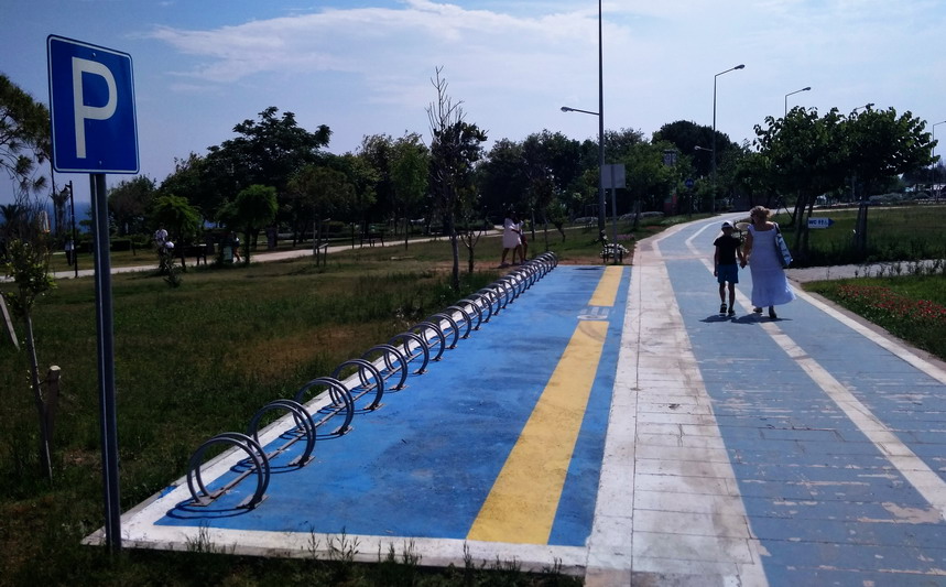 В гигантском парке у моря есть беговые и велодорожки, неплохая велопарковка.