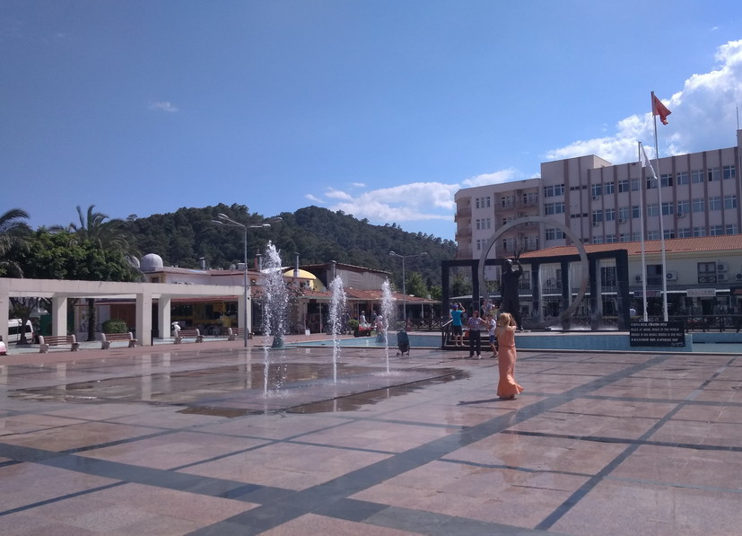 В самом центре города на площади - фонтаны, можно скупаться ))