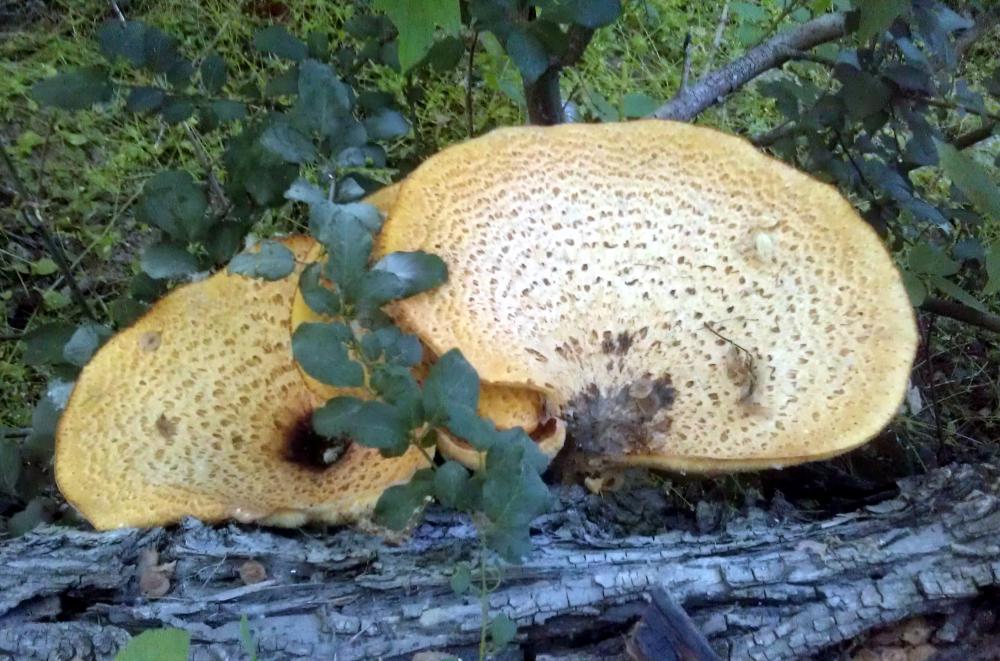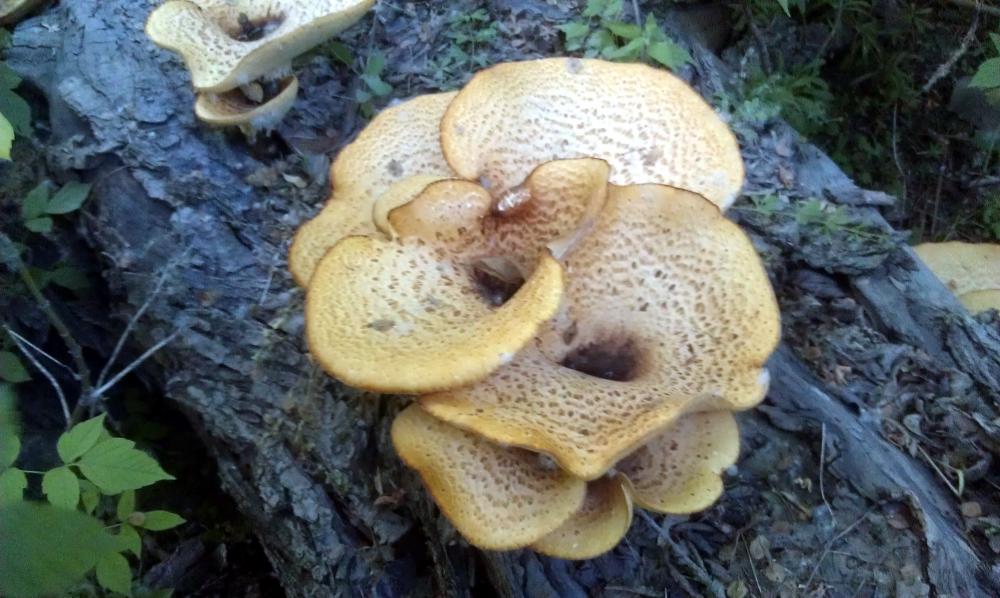 Вот в овраге обнаружил такие огромные грибы на старом трухлявом стволе дерева. Интересно, как называются эти грибы?