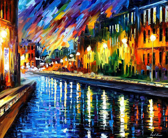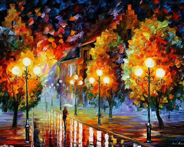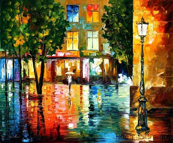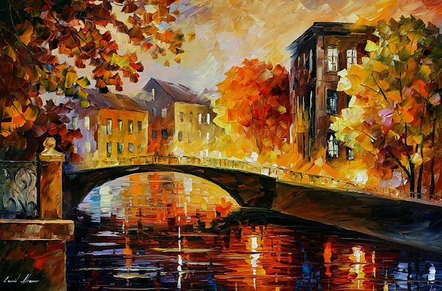 Художник Леонид Афремов родился в городе Витебске (Беларусь) в 1955 году. В 1990 переехал в Израиль. Его художественный стиль уникален и прост. Леонид использует нож вместо кисти.