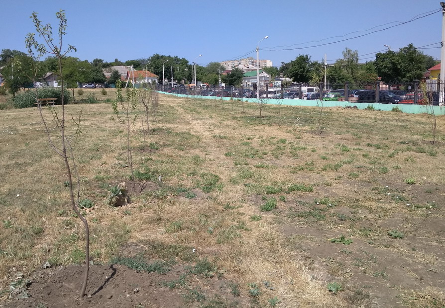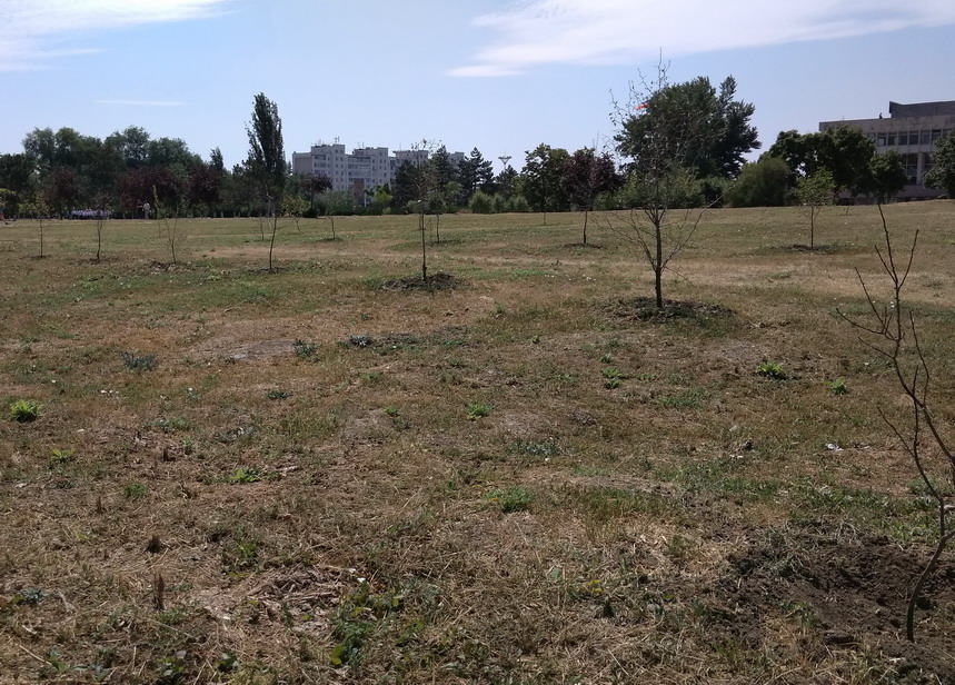 Сквер за Зеленым рынком и "Автостанцией" в Тирасполе. Если не поливать - скоро засохнут саженцы.