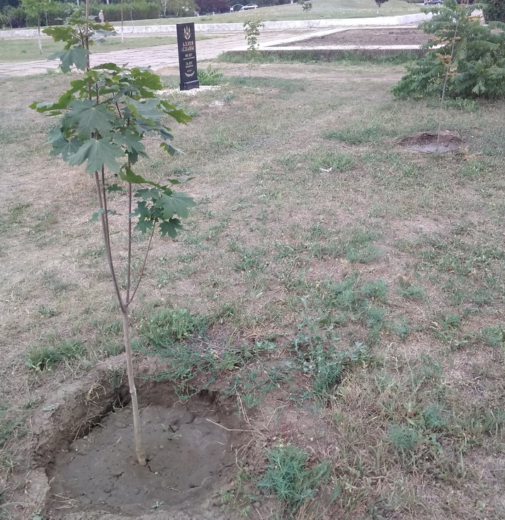 И снова жара, но посажены саженцы - которые скорее всего погибнут, да и уже видно что не прижились.
