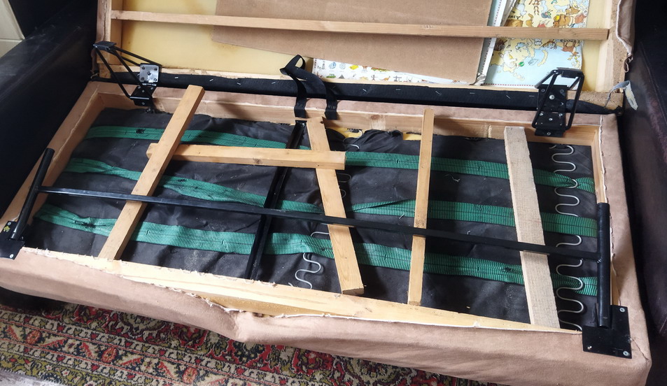 Решил Боря отремонтировать диван сыну, так как пружины (или растяжки, не знаю как правильно называются) оторвались от каркаса дивана.