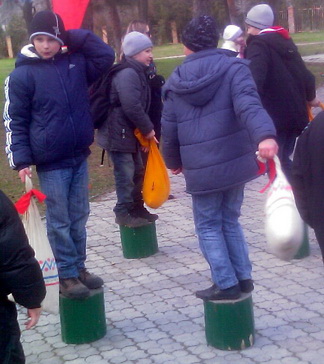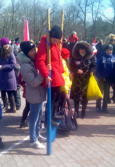 http://s52.radikal.ru/i137/1303/f7/4ce41a2a7cb7.jpg Соревнования по перетягиванию каната: http://s019.radikal.ru/i622/1303/3e/c912679eccdf.jpg http://i072.radikal.ru/1303/ab/3821df2a40f2.jpg Мэр города Гервазюк Ю.В. и его заместители поздравляет бендерчан с Масленицей и мэр в Прошеное Воскресенье просит прощения, если обидел горожан вольно или невольно (среди зрителей кто-то в точку сказал – «обидел дорогами»): http://s017.radikal.ru/i438/1303/60/f610ca299e3a.jpg Концерт на площади Освобождения (был организован Управлением культуры г. Бендеры и русской общиной «Добрыня»: Блин комом (переодетый Черт) и Масленица (переодетый Водяной): http://s42.radikal.ru/i095/1303/96/c554412ce1b4.jpg Конкурсы для малышей на поедание блинов на скорость: http://s58.radikal.ru/i162/1303/26/5e39e8d8fe1d.jpg Соревнования среди парней и мужчин города на поднятие гирь. Победил парень с гирями на снимке по имени Сергей (61 раз поднимал обе гири, за что получил приз от Госадминистрации – блинную сковороду с гравировкой) http://s020.radikal.ru/i704/1303/bd/02915f4a3351.jpg Конкурсы на скоростное поедание блинов (обратите внимание на госпожу Онуфриенко в роли фотокорреспондента): http://s018.radikal.ru/i515/1303/ea/639c80457065.jpg http://s018.radikal.ru/i515/1303/ea/639c80457065.jpg |