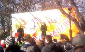 http://i065.radikal.ru/1303/68/611530b1c4a0.jpg Встреча Весны с песнями и танцами в исполнении участниц и участников ансамбля «Добрынюшка»: http://s018.radikal.ru/i526/1303/b1/750f14b1a5d9.jpg А вот и сама Весна (крайняя слева) в нарядном кокошнике: http://s45.radikal.ru/i109/1303/f5/c50f453b3cb0.jpg http://i047.radikal.ru/1303/de/5feb7da2efd9.jpg Сжигание чучела Масленицы (не каждый день костер у стен Госадминистрации можно увидеть): http://s55.radikal.ru/i148/1303/52/807d8d0cdc7e.jpg Большое спасибо всем организаторам, спонсорам и участникам за подаренное горожанам праздничное настроение не смотря на пронизывающий ветер и мороз! |