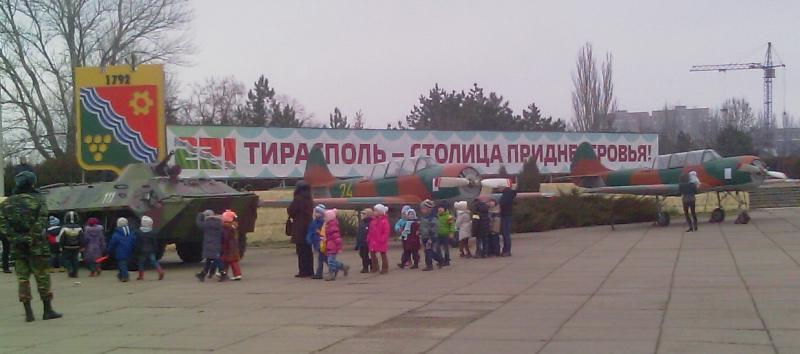 Небольшая (3 экспоната) выставка военной техники в центре Тирасполя на улице на НГ 2014.