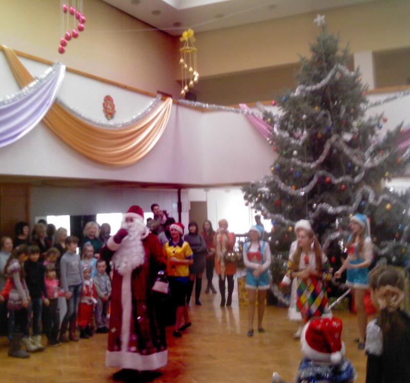 Новогодний утренник в ДДЮТ Тирасполя с представлением по сюжету Нарнии и потом хороводами с Дедом Морозом и Снегурочкой у елки.